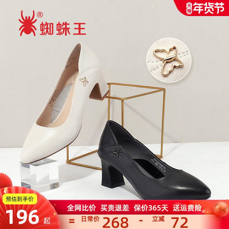 蜘蛛王女鞋高跟鞋春秋季新款真皮一脚蹬职业黑色面试鞋粗跟女单鞋