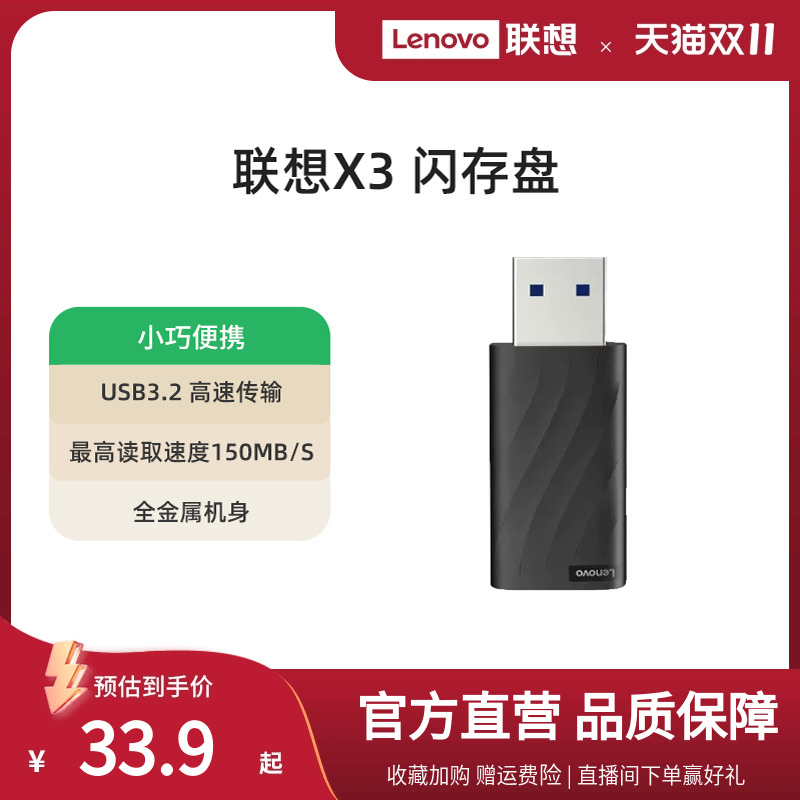 新品 联想128g金属X3 U盘64g高速大容量学生优盘电脑手机办公正品