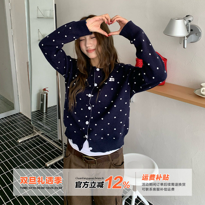 橘子树在哪儿韩系波点针织开衫女秋季温柔风软糯显瘦百搭长袖上衣