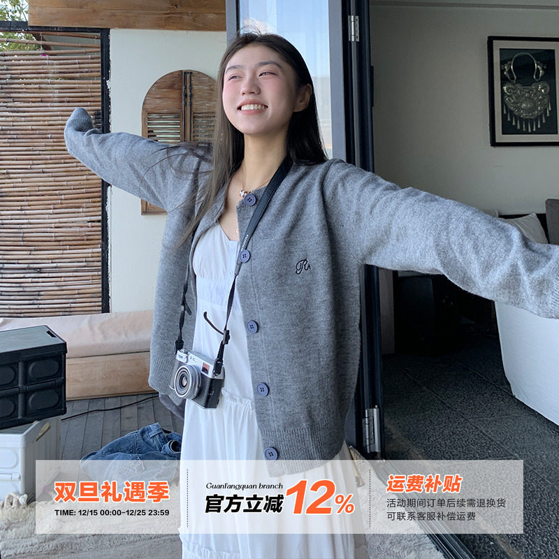 橘子树在哪儿韩系灰色针织开衫女秋季款宽松显瘦百搭短款毛衣外套