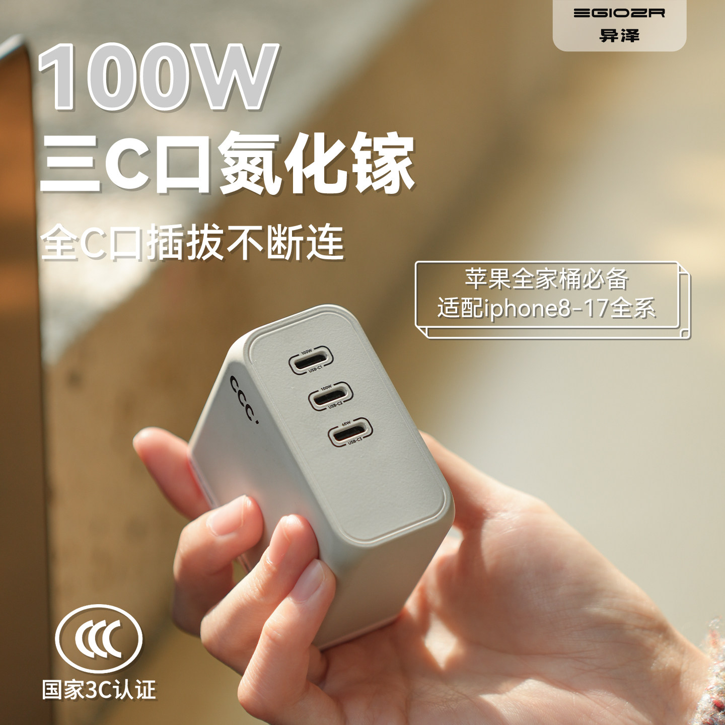 异泽100W氮化镓充电器GaN充电头3三C口PD快充双typec多C口全C适用三星苹果17pro小米pps手机Mac笔记本电脑air