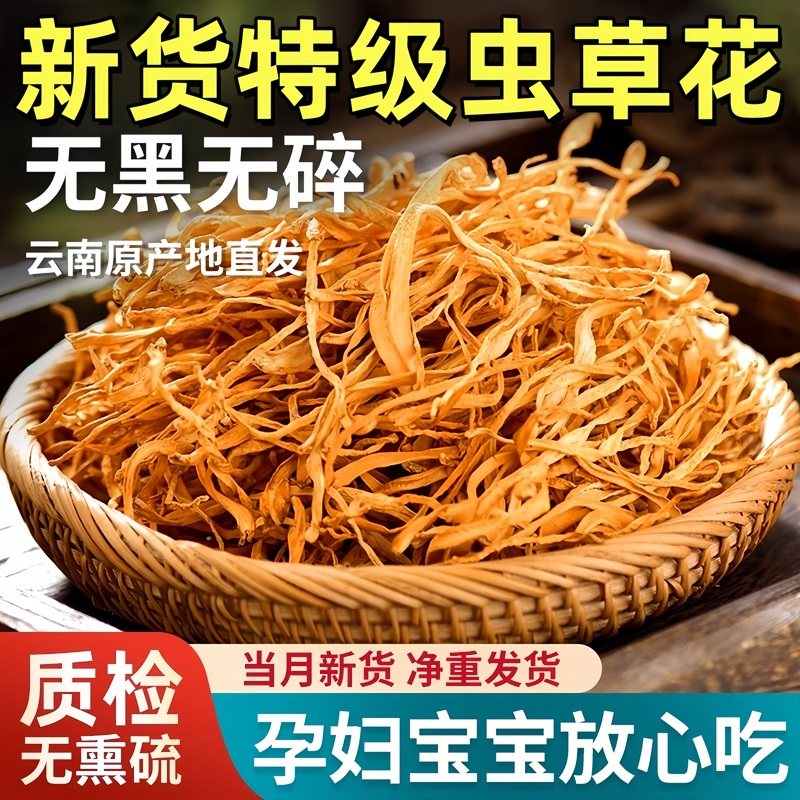 2025新货当季虫草花嫩干货精选孢子头新鲜北虫草煲鸡汤正宗金虫草