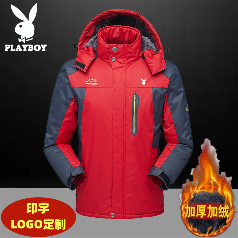 花花公子冬季冲锋棉衣男加绒加厚大码防风防水保暖户外工作服外套