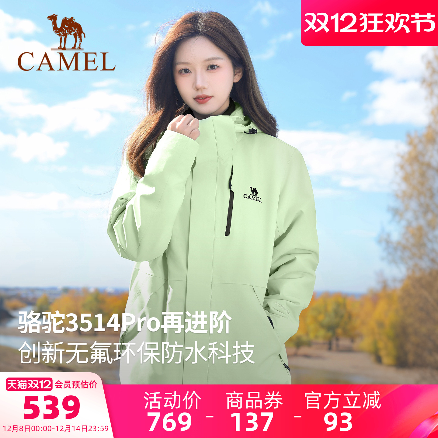 骆驼3514Pro冲锋衣男女款三合一冬季抓绒加厚防风防水外套登山服
