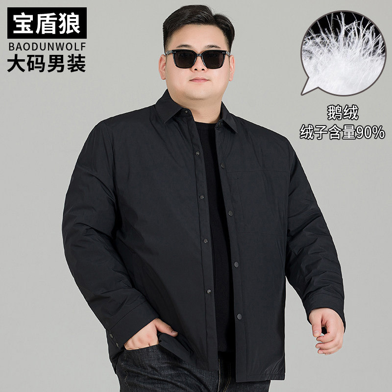 时尚翻领白鹅绒羽绒服男加大码冬季保暖夹克胖子宽松防寒羽绒外套