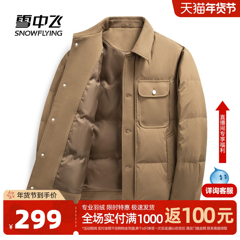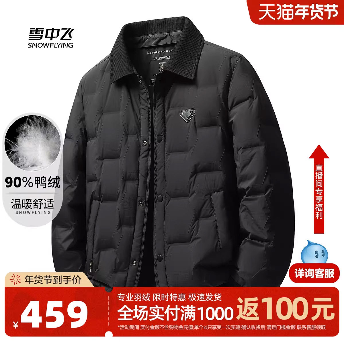 雪中飞2025冬新款鹅绒男士短款翻领夹克羽绒服商务休闲保暖爸爸装