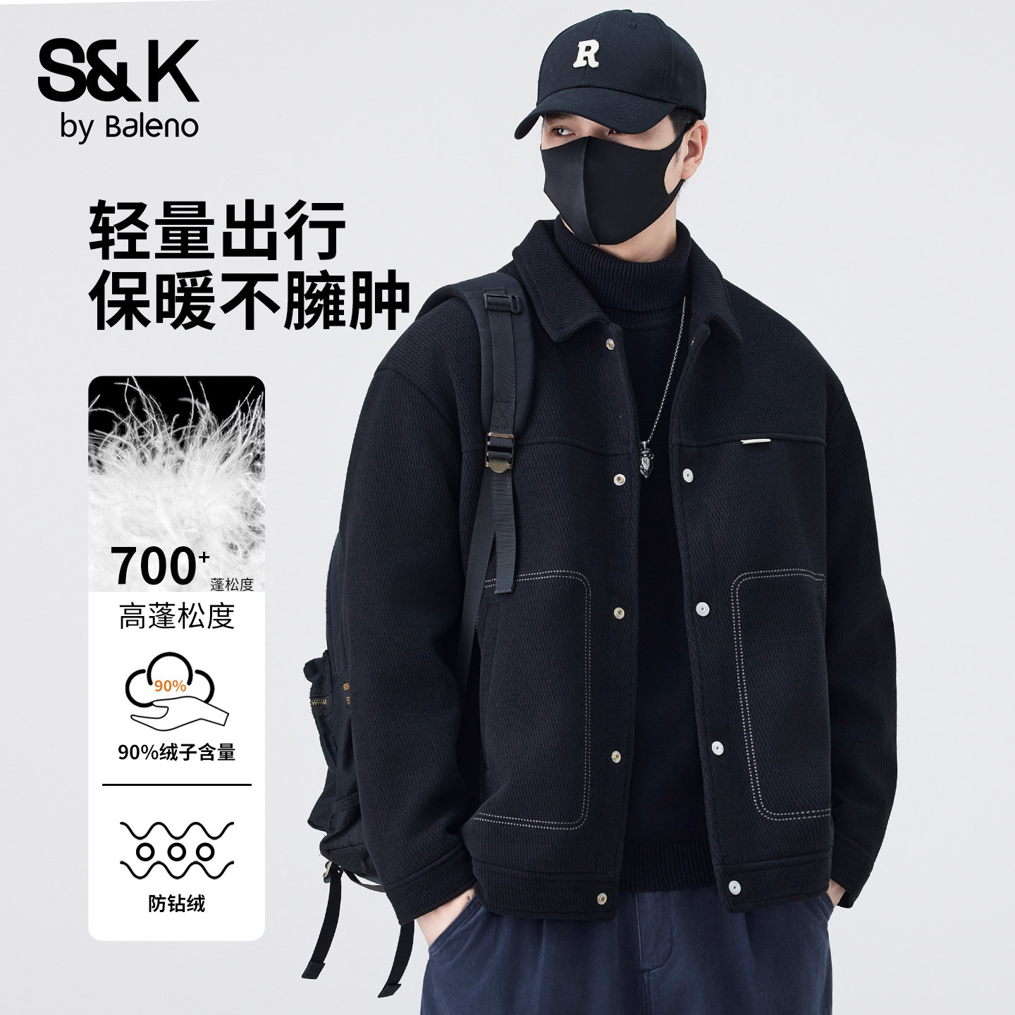 班尼路SK翻领短款鸭绒羽绒服男冬季加厚保暖工装夹克外套上衣男YS