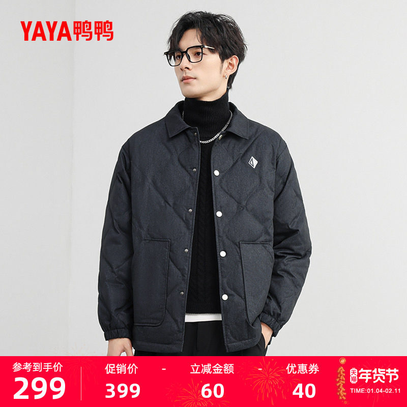 鸭鸭羽绒服男士2025冬季新品时尚百搭翻领鸭绒保暖休闲外套上衣F