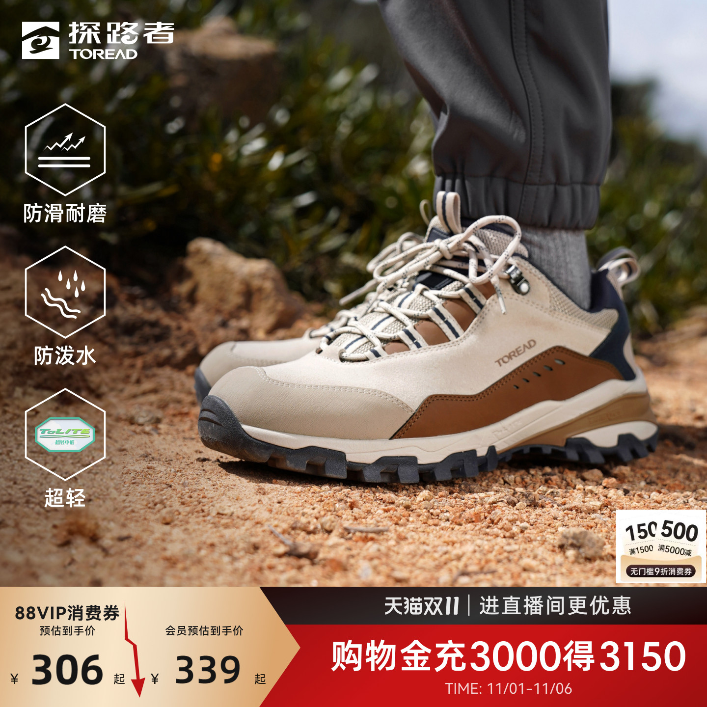 探路者徒步鞋2025新款户外防滑防泼水耐磨轻量化登山鞋运动鞋男女