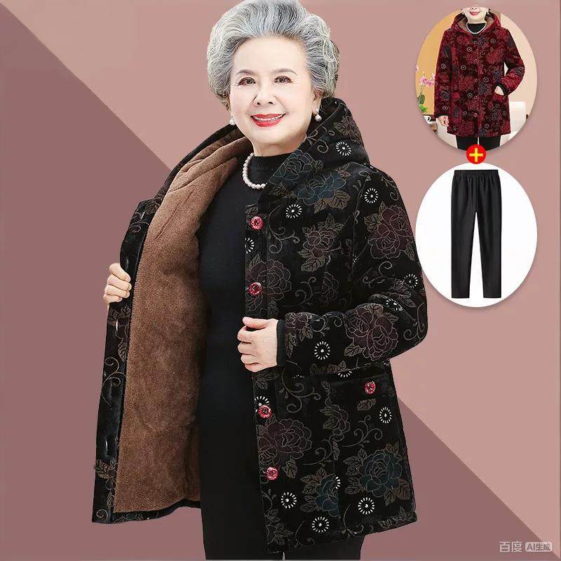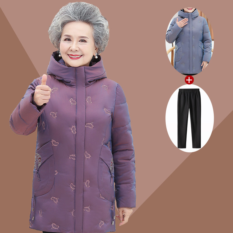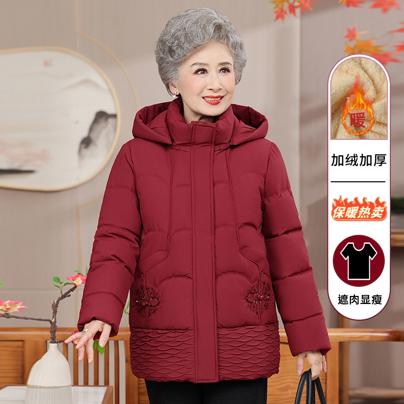 奶奶冬装棉衣女中老年人棉袄加厚妈妈羽绒棉服外套老太太连帽衣服