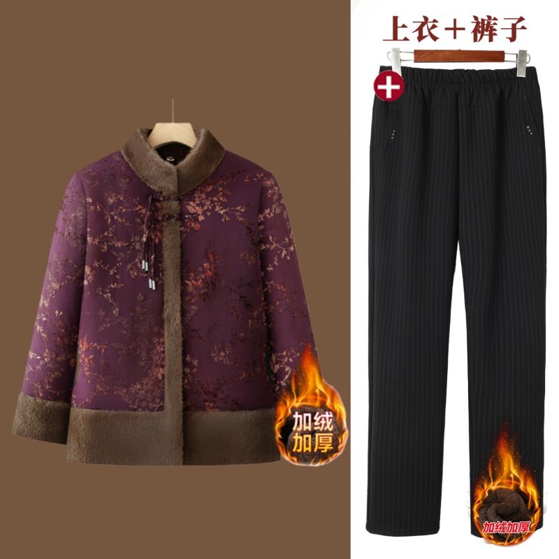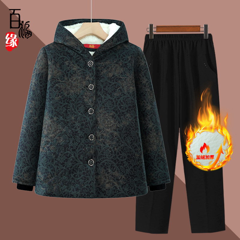 老太太新款棉袄套装中老年人冬装棉衣女奶奶加绒加厚妈妈保暖外套