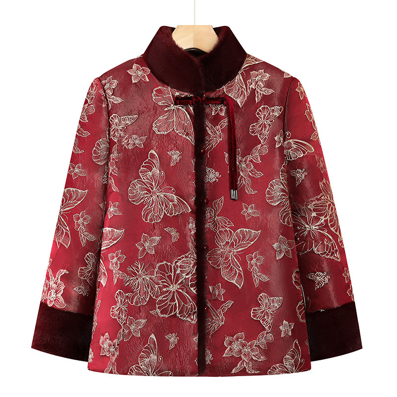中老年人冬装棉衣女奶奶装加绒加厚外套洋气妈妈装盘扣棉袄老太太