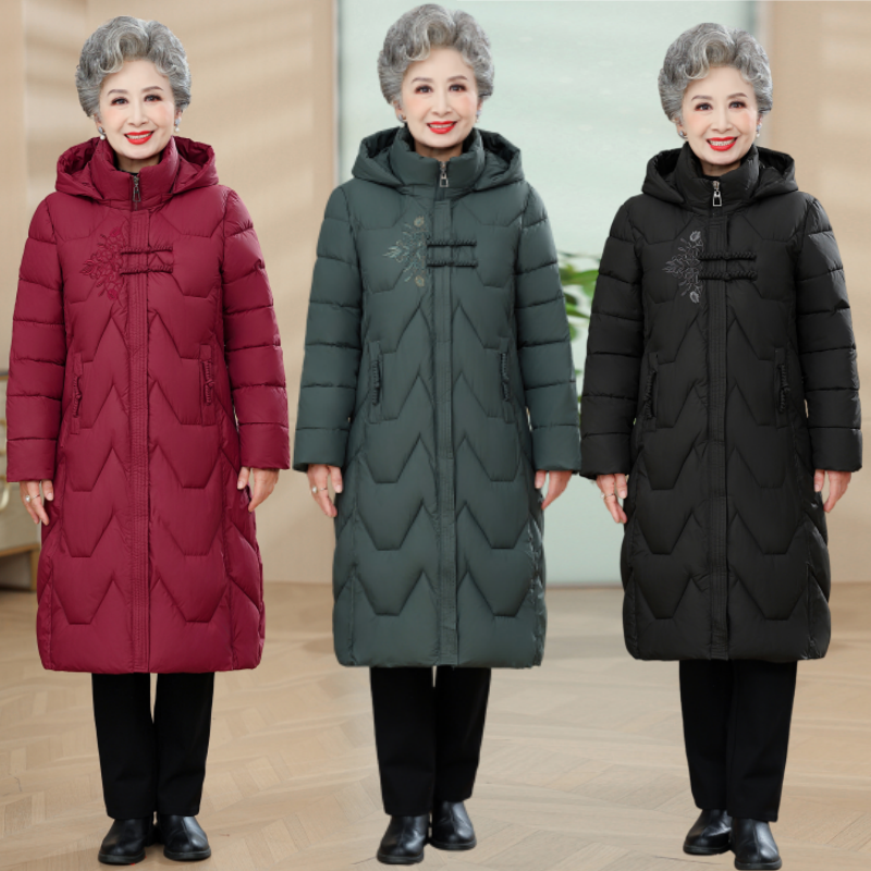 中老年人冬装棉衣女妈妈保暖羽绒棉服中长款奶奶装棉袄老太太外套