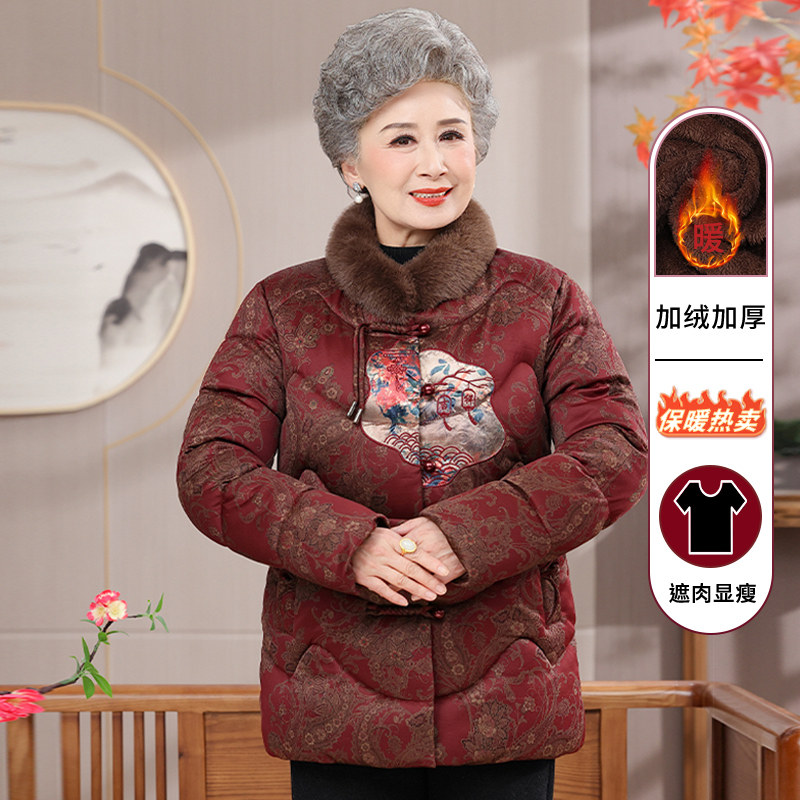 奶奶冬装棉衣新中式老年人加绒加厚羽绒棉袄女洋气外套妈妈款衣服
