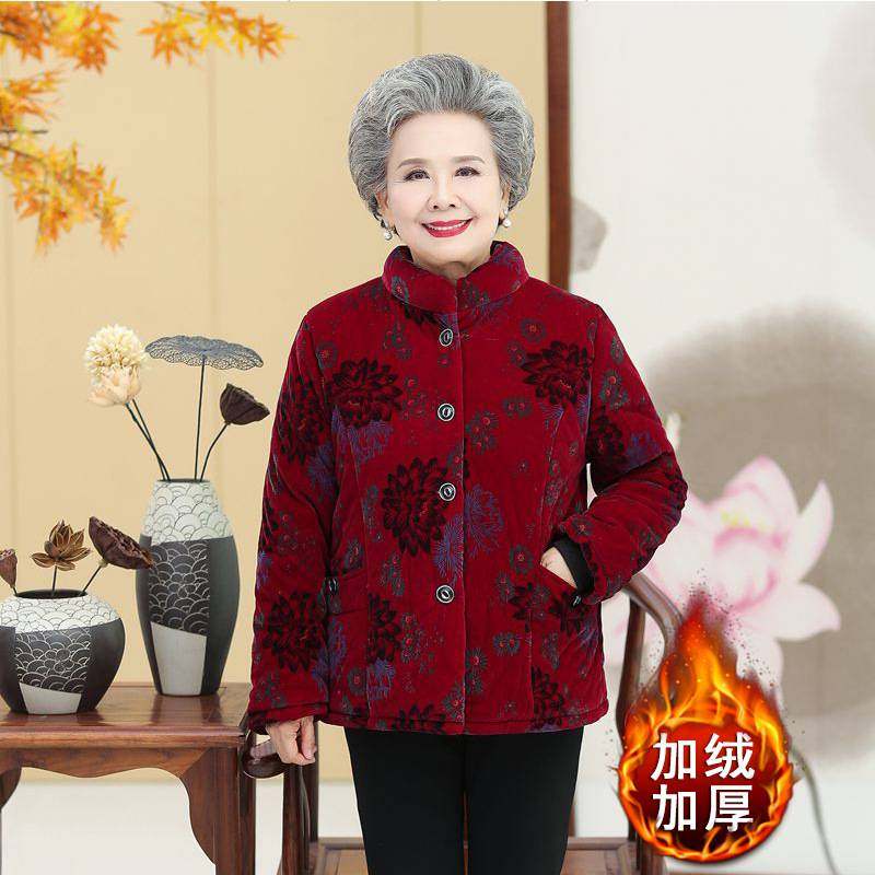 奶奶冬装外套棉衣女中老年人棉袄加绒加厚老年妈妈冬季老太太唐装