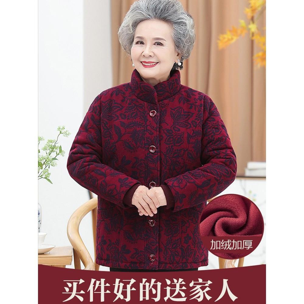 好品中老年人冬装棉衣女60岁70奶奶加绒加厚保暖棉袄妈妈立领棉服