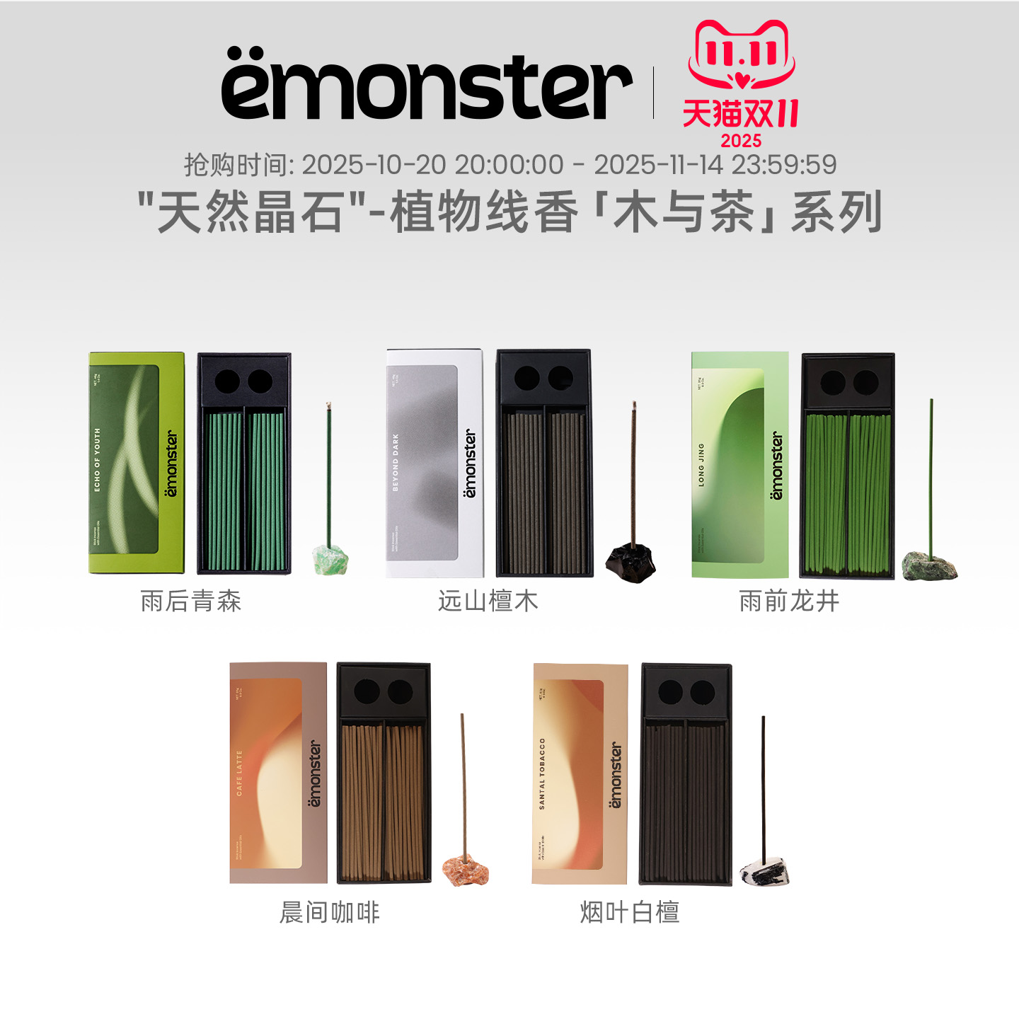 emonster线香檀香晶石香薰卧室内家用香插熏香氛摆件精油礼物X2盒