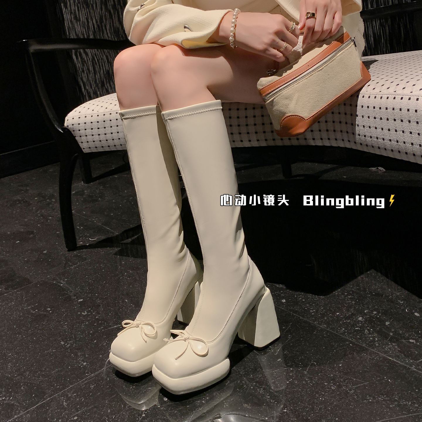 高跟防水台弹力靴女2025年秋冬新款厚底粗跟过膝靴瘦瘦靴套筒长靴
