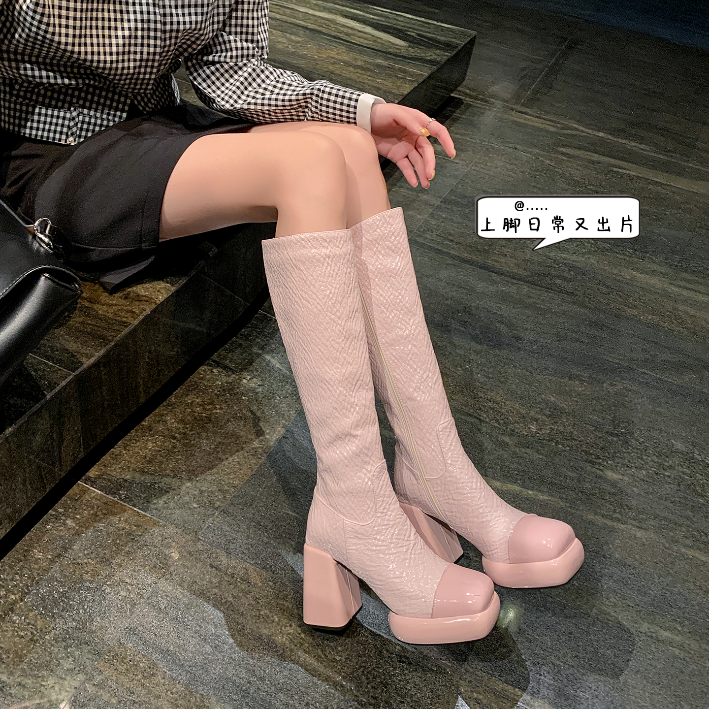 过膝长筒靴女款2025新款秋冬粗跟高跟长靴不过膝厚底防水台时装靴