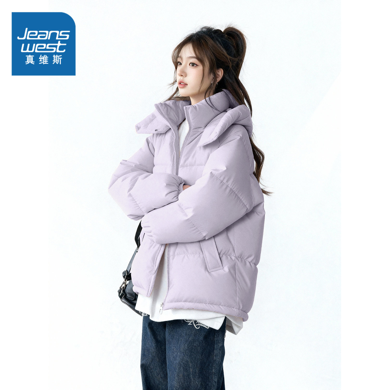 NOW真维斯紫色棉服女款2025新款冬季连帽巨好看的冬装厚棉袄外套
