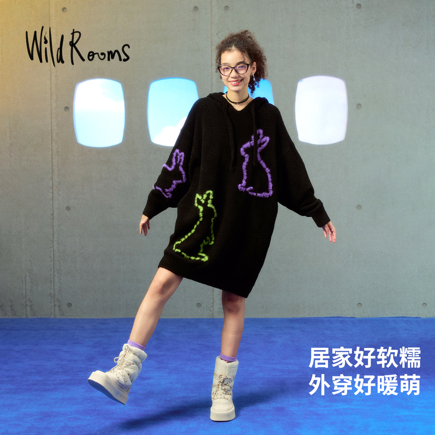 WildRooms针织睡裙家居卫衣裙连帽宽松百搭时尚睡衣可外穿冬季
