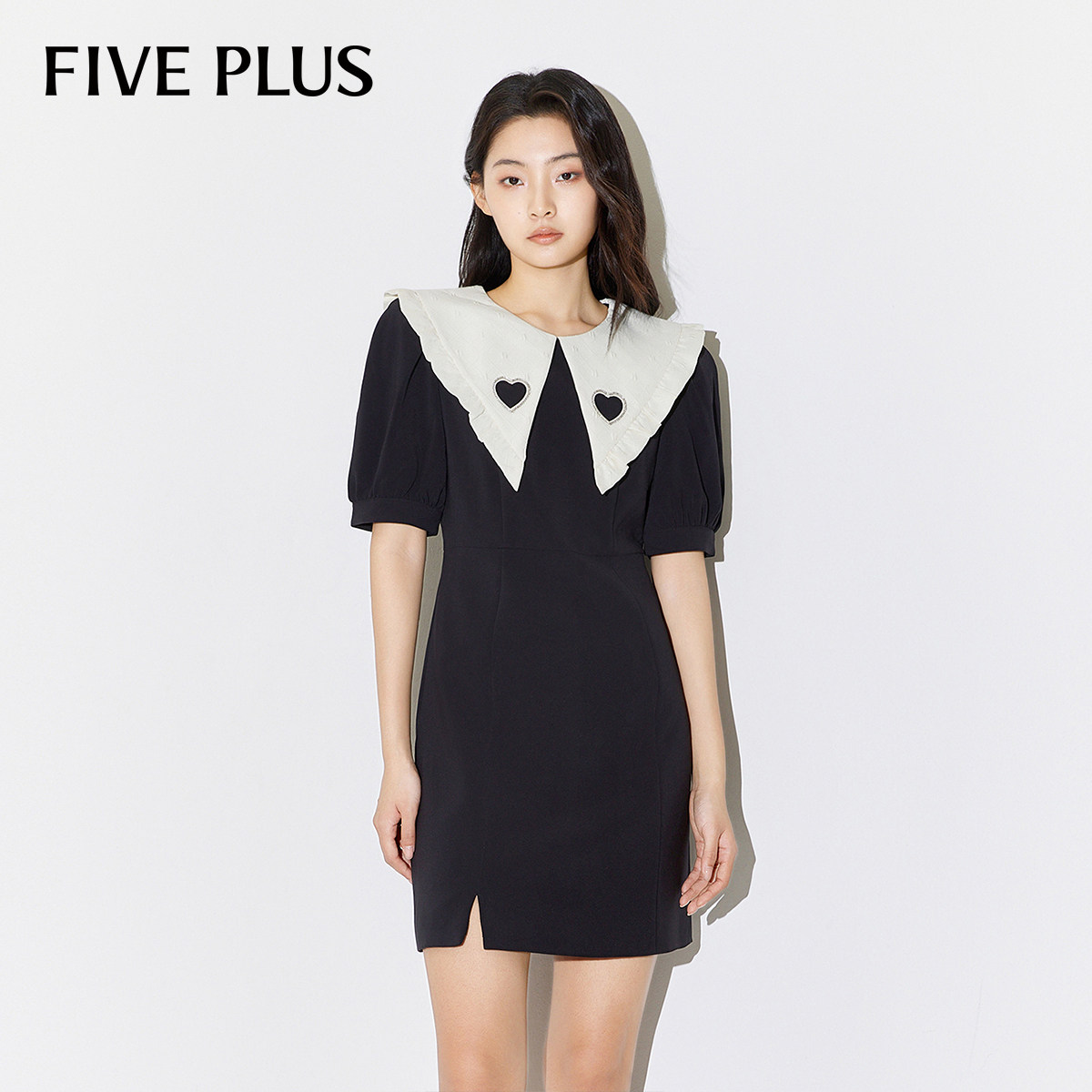 FIVE PLUS法式少女感连衣裙女娃娃领宽松高腰泡泡袖A字短裙女春装