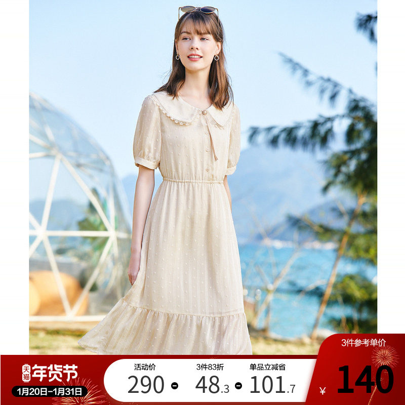 Betu百图短袖连衣裙女娃娃领甜美气质a字公主裙2026年春装新款