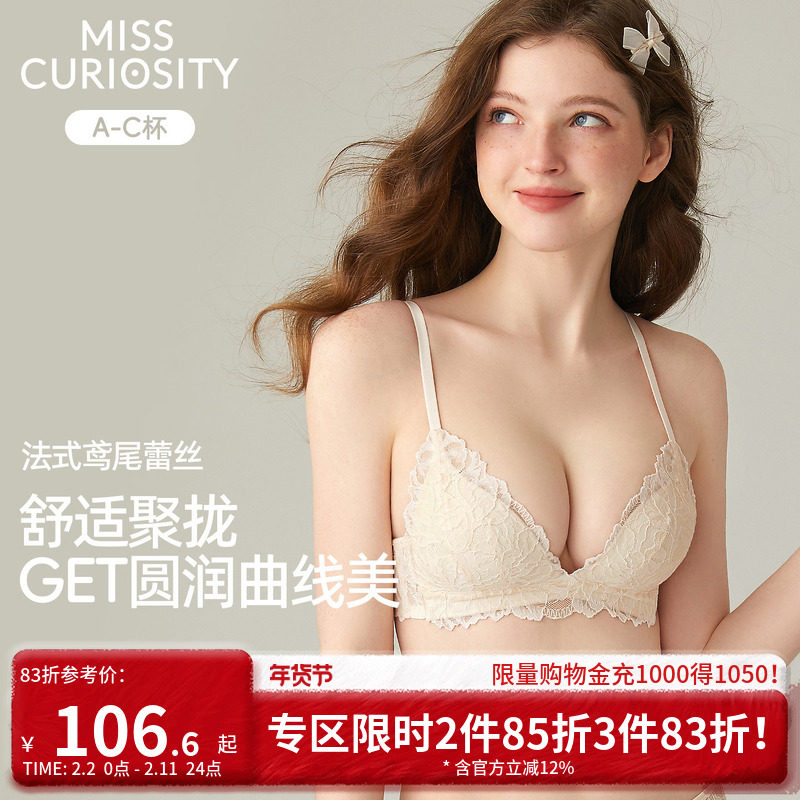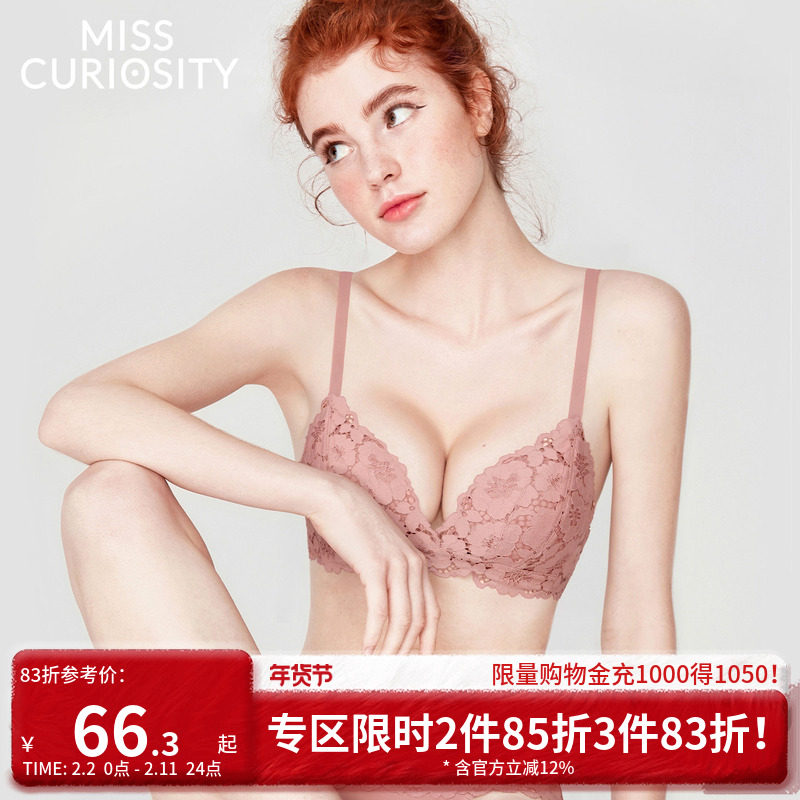 好奇蜜斯蕾丝内衣女小胸聚拢显大性感文胸罩套装无钢圈薄防下垂白