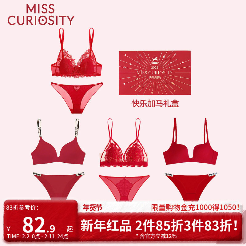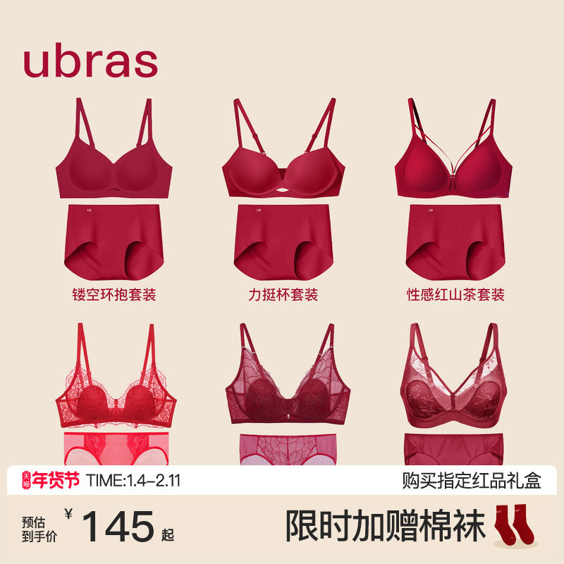 ubras本命年红色内衣套装无尺码红文胸小胸马年内衣裤新年礼盒女