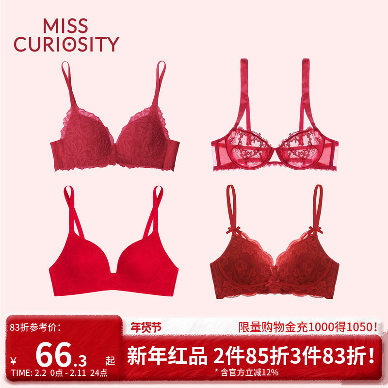 六只兔子红色本命年内衣套装小胸聚拢蕾丝胸罩结婚新娘文胸礼盒装
