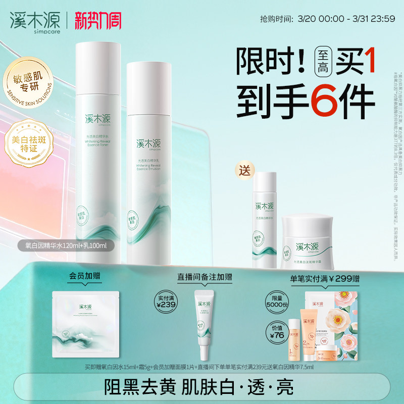 溪木源氧白因水乳套装敏感肌美白修护淡斑提亮温和不刺激护肤品女