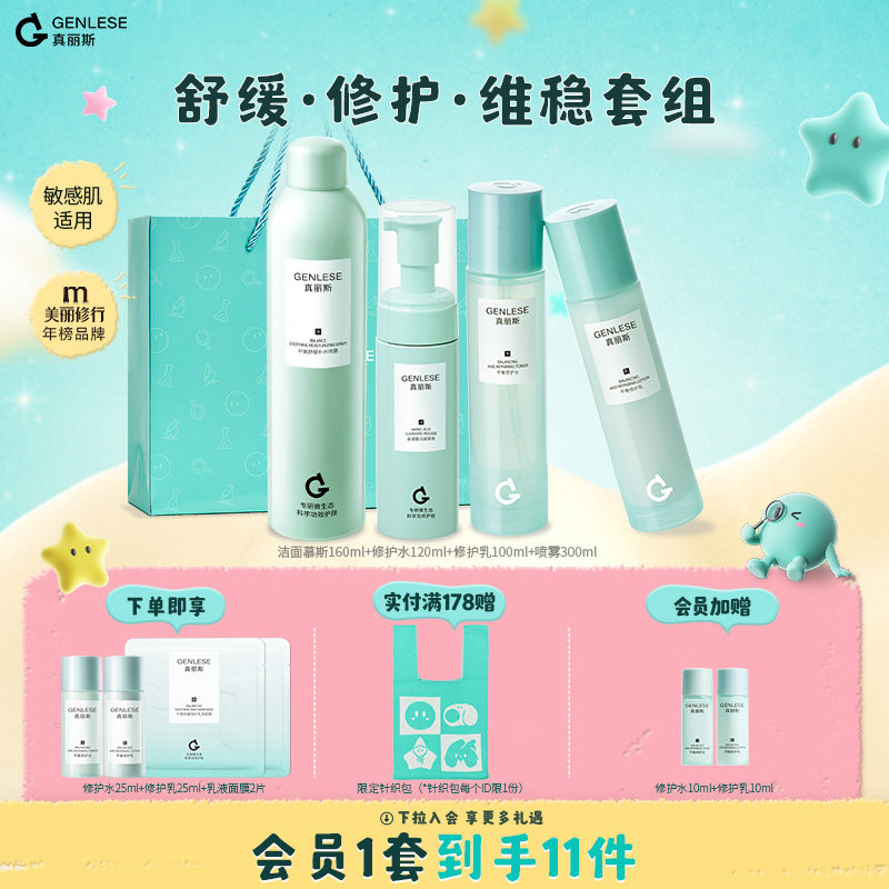 真丽斯水乳套装油皮保湿补水舒缓平衡修护清爽学生女护肤品化妆品