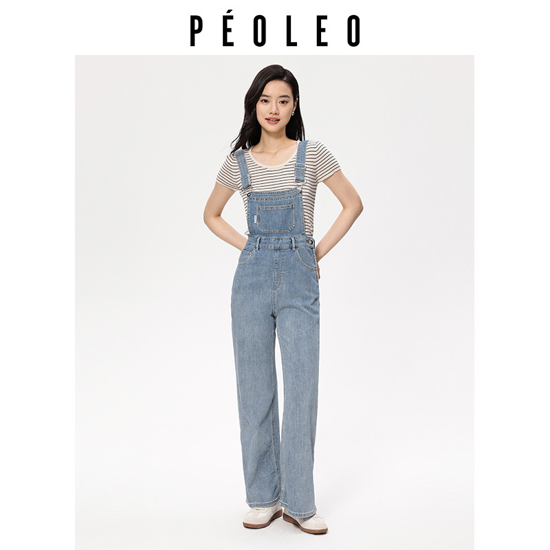 Navigare意大利小帆船牛仔背带裤女士2025新款纯棉直筒显瘦长裤子