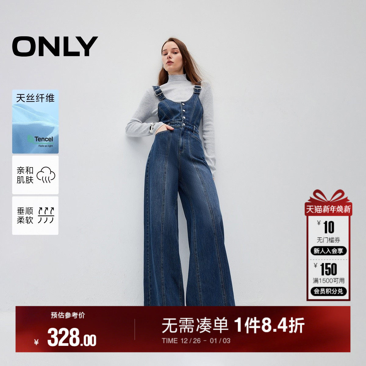 【天丝】ONLY时尚百搭莱赛尔垂坠显瘦收腰阔腿背带裤长裤牛仔裤女