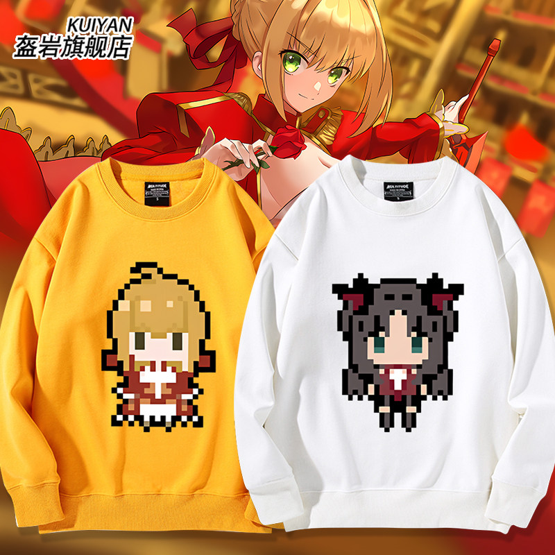 Fate stay night远坂凛尼禄周边像素风圆领卫衣男女秋冬衣服上衣