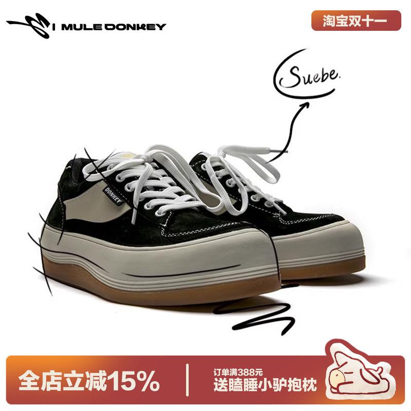 多嘴驴Donkey厚底帆布鞋女款秋季经典低帮黑色小众面包鞋休闲板鞋