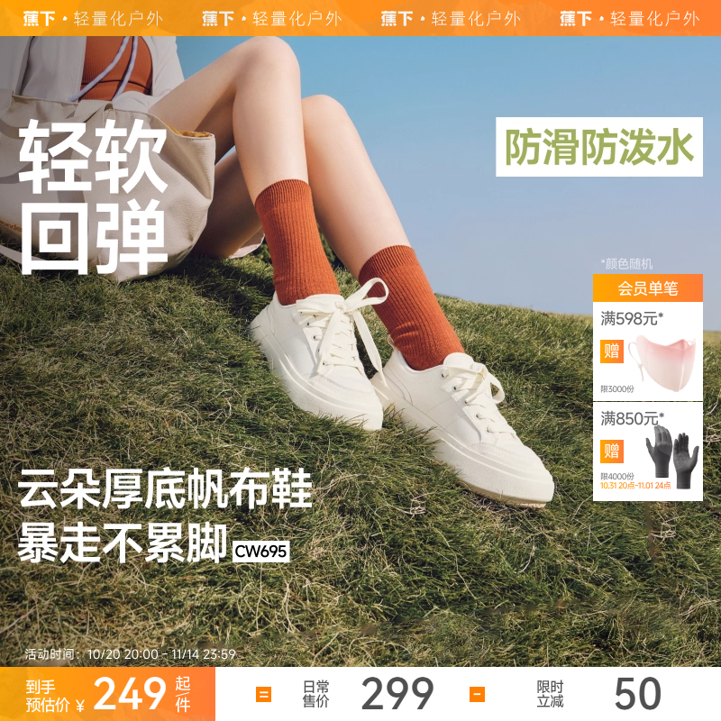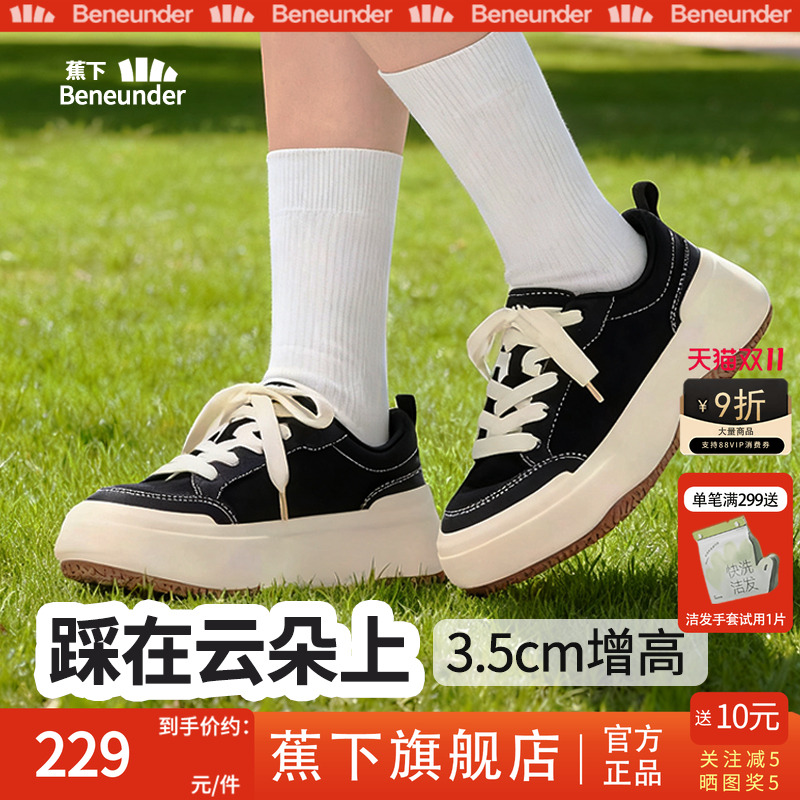 蕉下小白鞋女板鞋厚底增高低帮百搭复古帆布鞋一脚蹬休闲运动鞋子