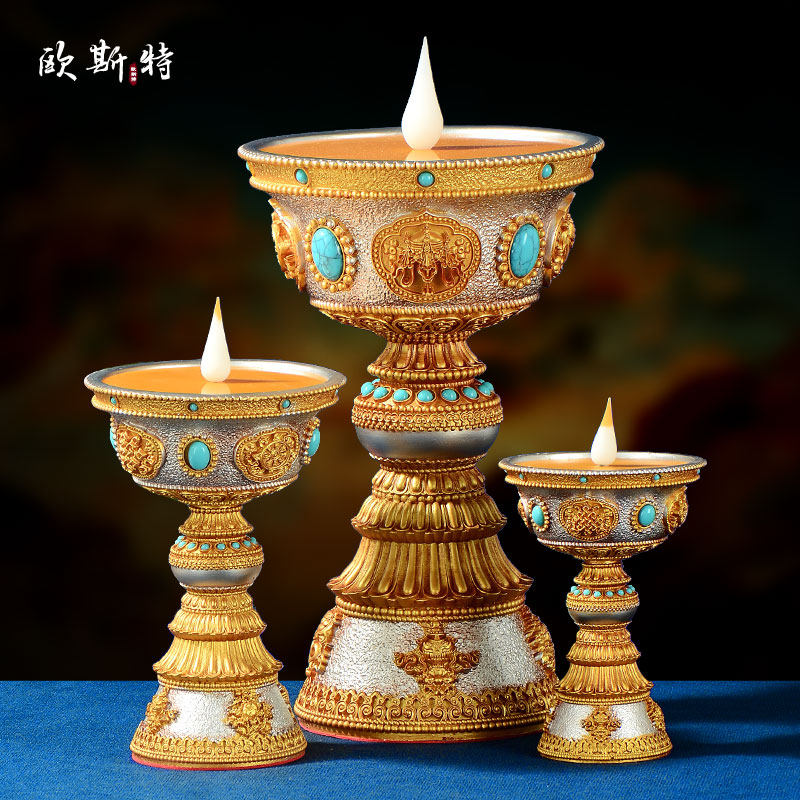 LED酥油灯室内家用八吉祥雕花电子酥油灯佛前供灯蜡烛台长明灯