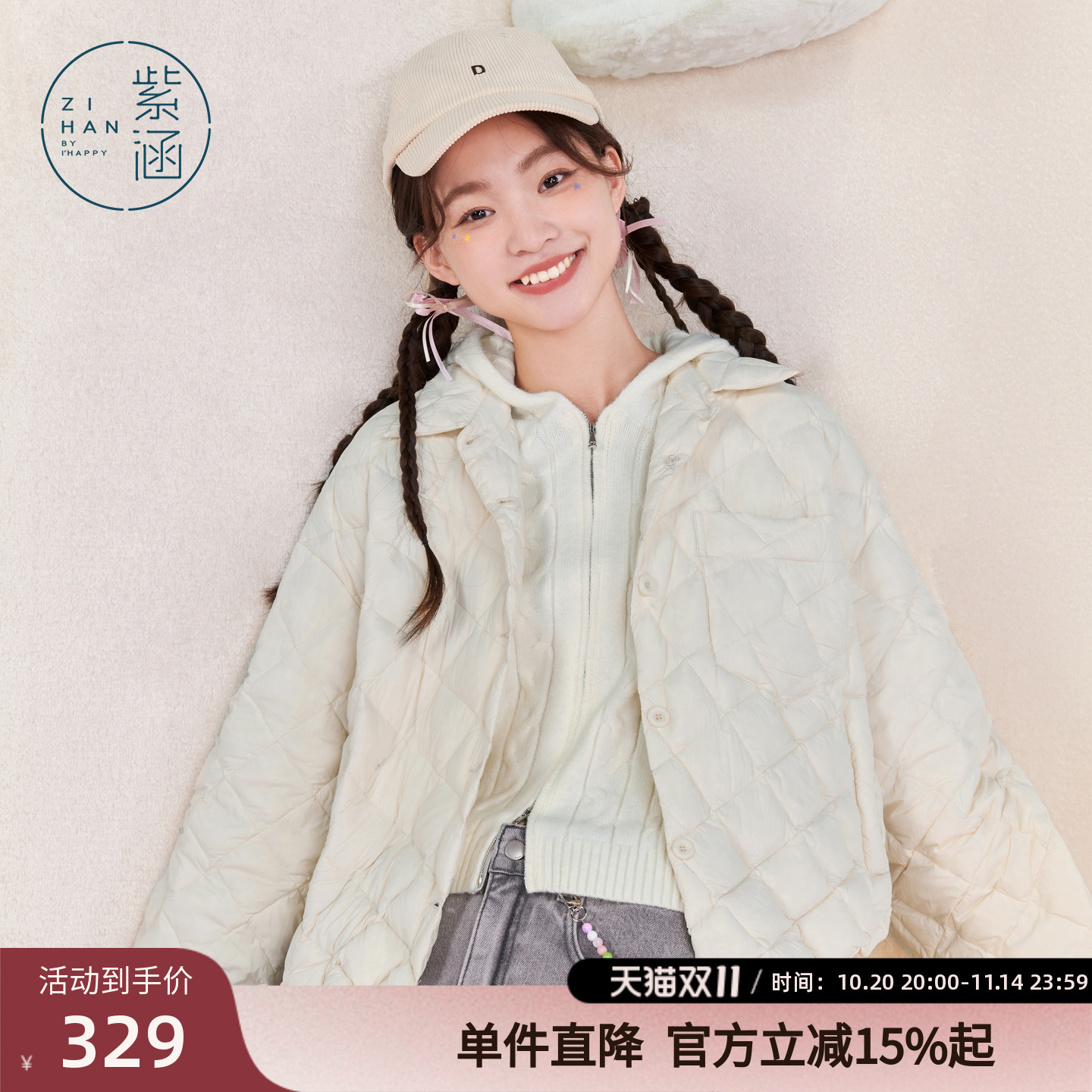 紫涵衬衫式菱格羽绒服女冬季新款轻薄设计感通勤宽松鸭绒衬衣外套