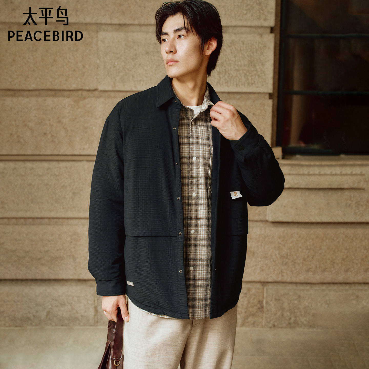 【衬衫式】太平鸟男装 轻薄羽绒服2025年冬季新款提花保暖防寒服