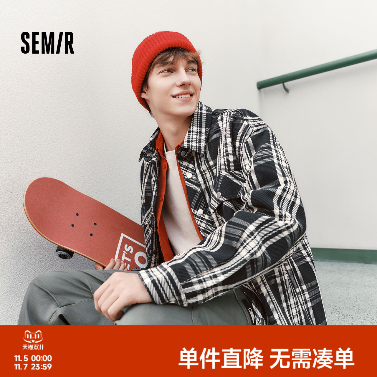 森马牛仔外套男美式复古格纹衬衫式夹克2025春新款上衣潮流小宽松