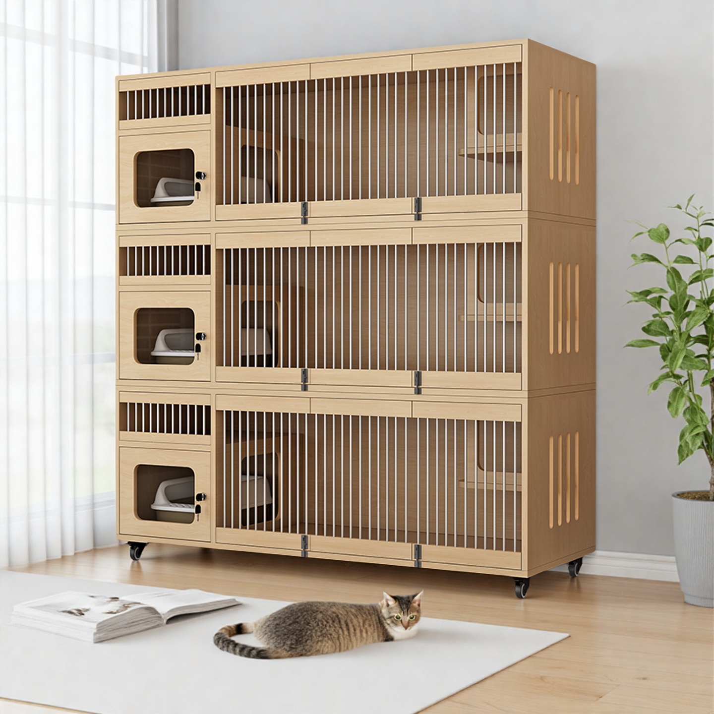 猫窝三层猫别墅猫笼子大空间透气猫咪猫舍宠物店狗窝室内实木猫柜