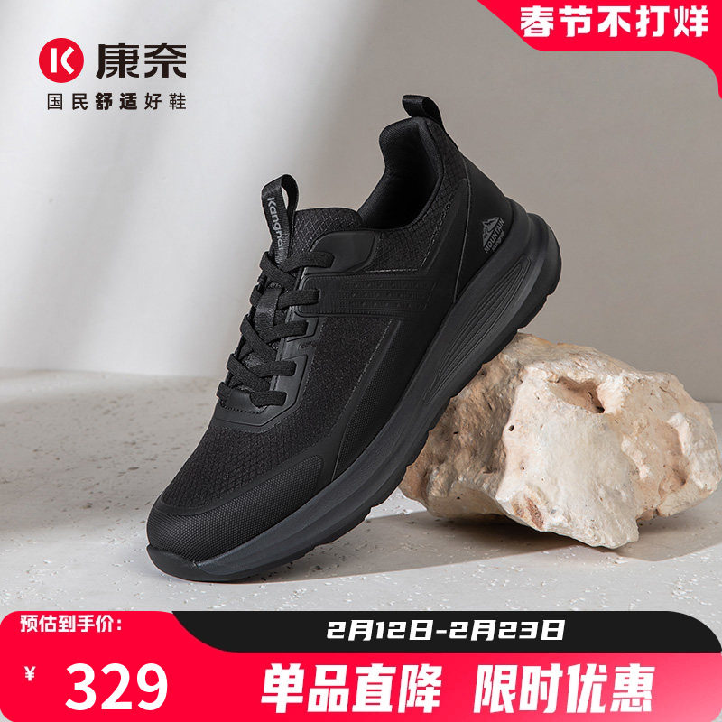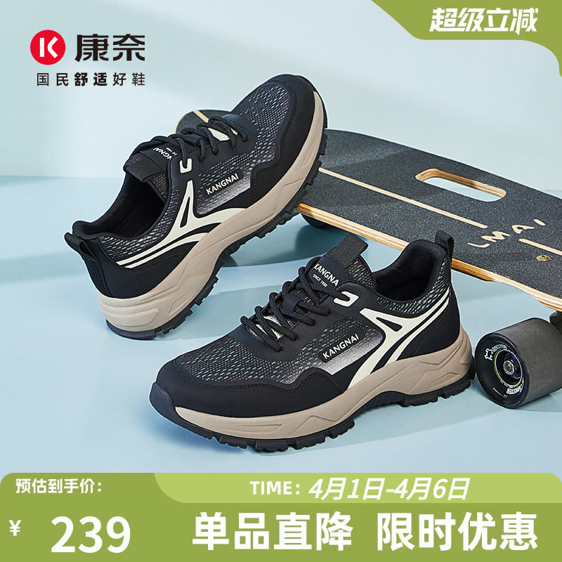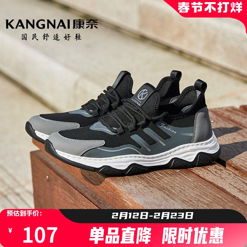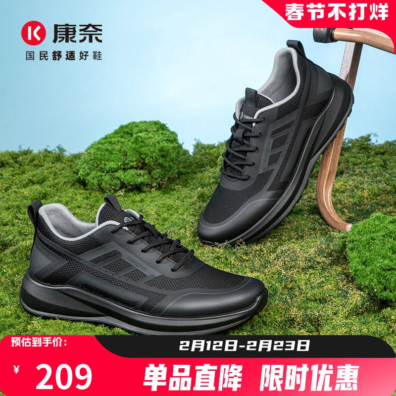 康奈男鞋飞织户外男士旅游鞋秋季透气网布黑色网鞋舒适休闲老爹鞋