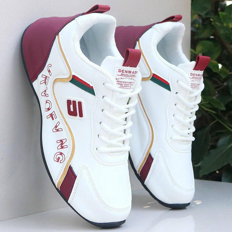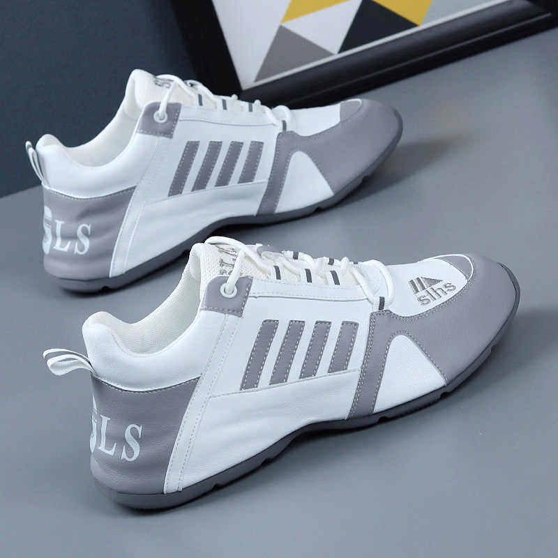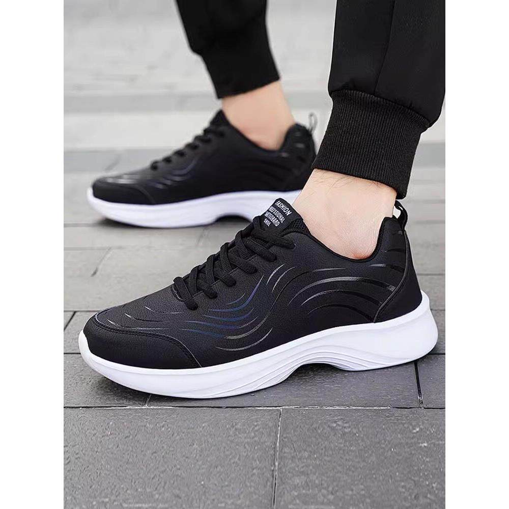 皮面运动鞋男鞋2024秋季白色跑步鞋子男款防水休闲鞋软底旅游鞋男