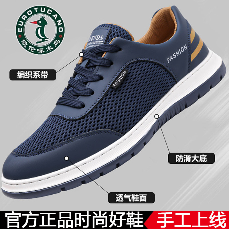 欧伦啄木鸟秋季新款运动鞋轻便透气跑步鞋男士防滑网面旅游休闲鞋