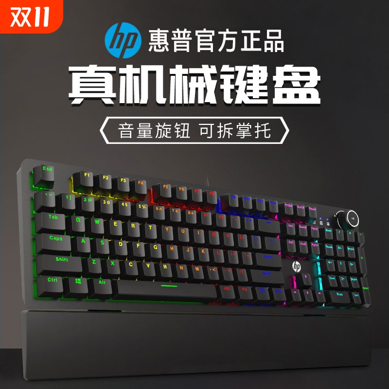 惠普游戏电竞机械键盘鼠标套装青轴黑轴红轴有线外接办公104黑色