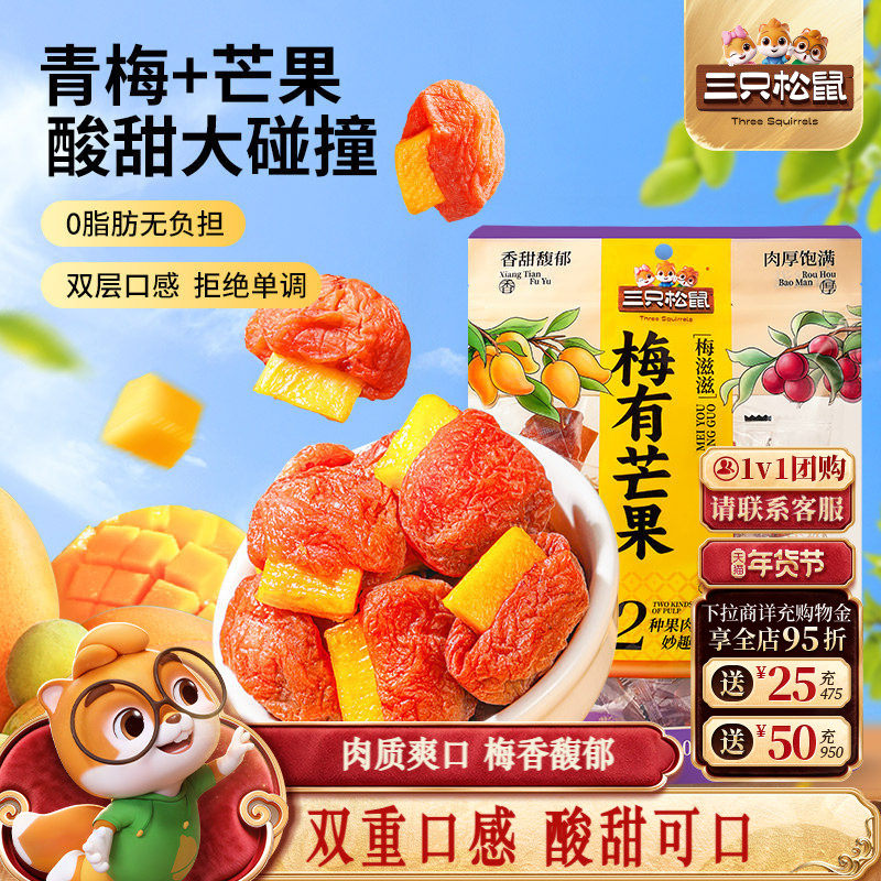 三只松鼠梅有芒果100g梅子夹芒果干蜜饯果脯休闲下午茶零食小吃