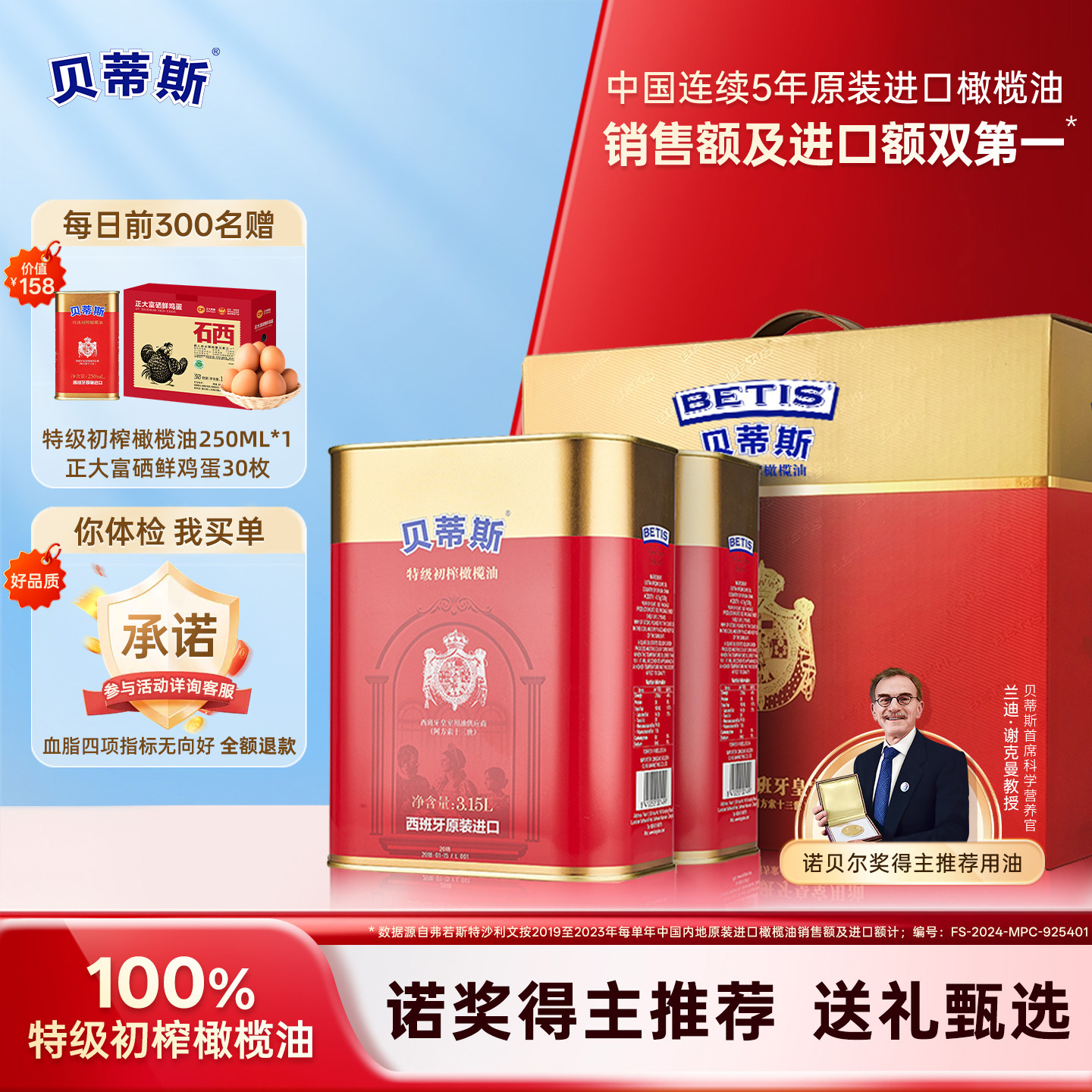 贝蒂斯特级初榨橄榄油3.15L*2礼盒西班牙原装进口冷榨囤货送礼