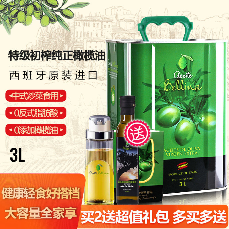 蓓琳娜西班牙原装进口100%特级初榨橄榄油3L铁罐轻食中式烹饪食用