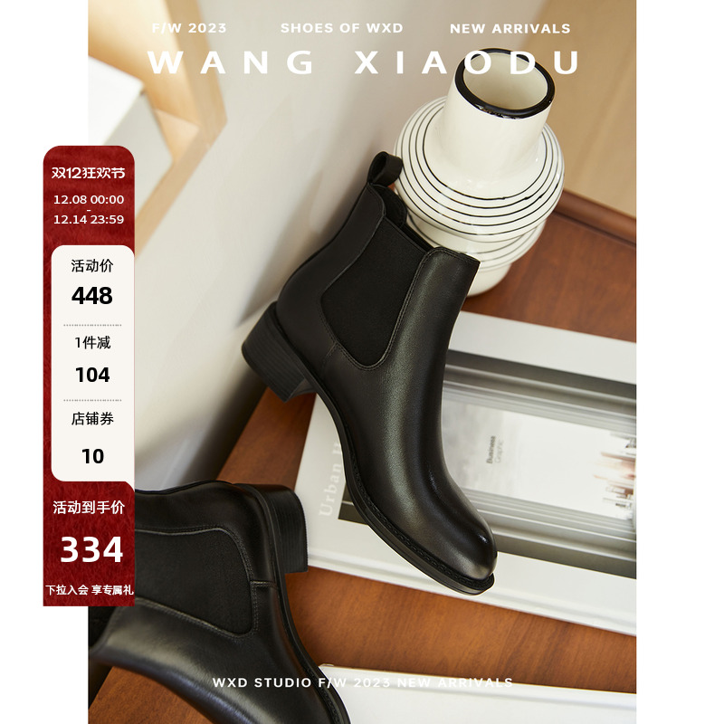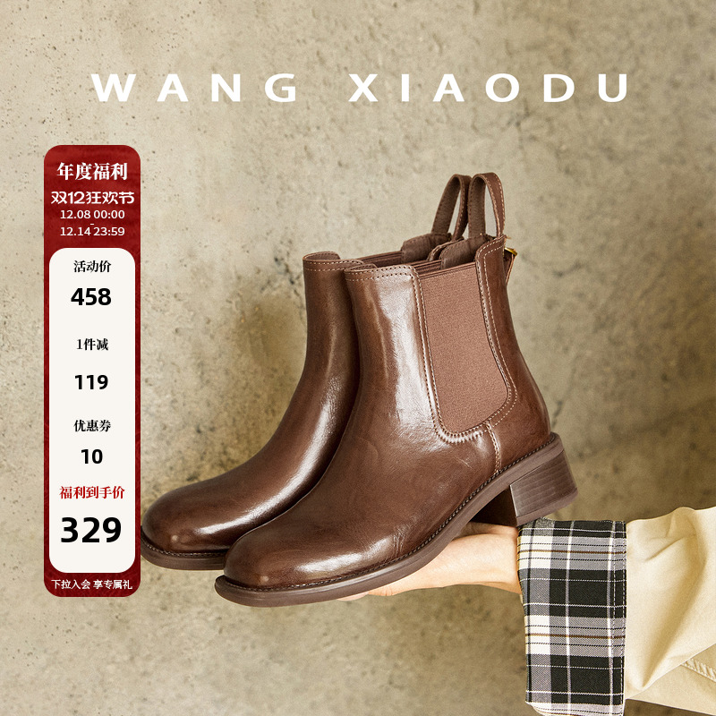 劲爆福利!【王小毒】自由漫步●4.5cm粗跟切尔西靴女通勤真皮短靴